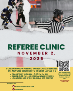 Please note those new to refereeing will have an on-ice session from 3:00-4:00 PM